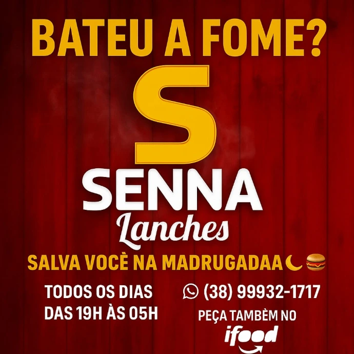 Do primeiro pedido da noite até o último da manhã, o Senna Lanches entrega sabor, rapidez e aquele lanche caprichado que salva a madrugada. Funcionamos todos os dias, das 19h às 6h.